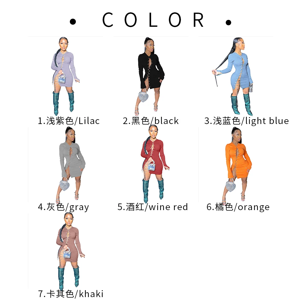 Zipper Hollow Chain Sexy Bodycon Women Casual dresses