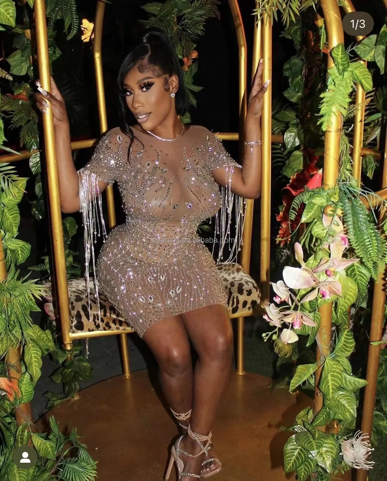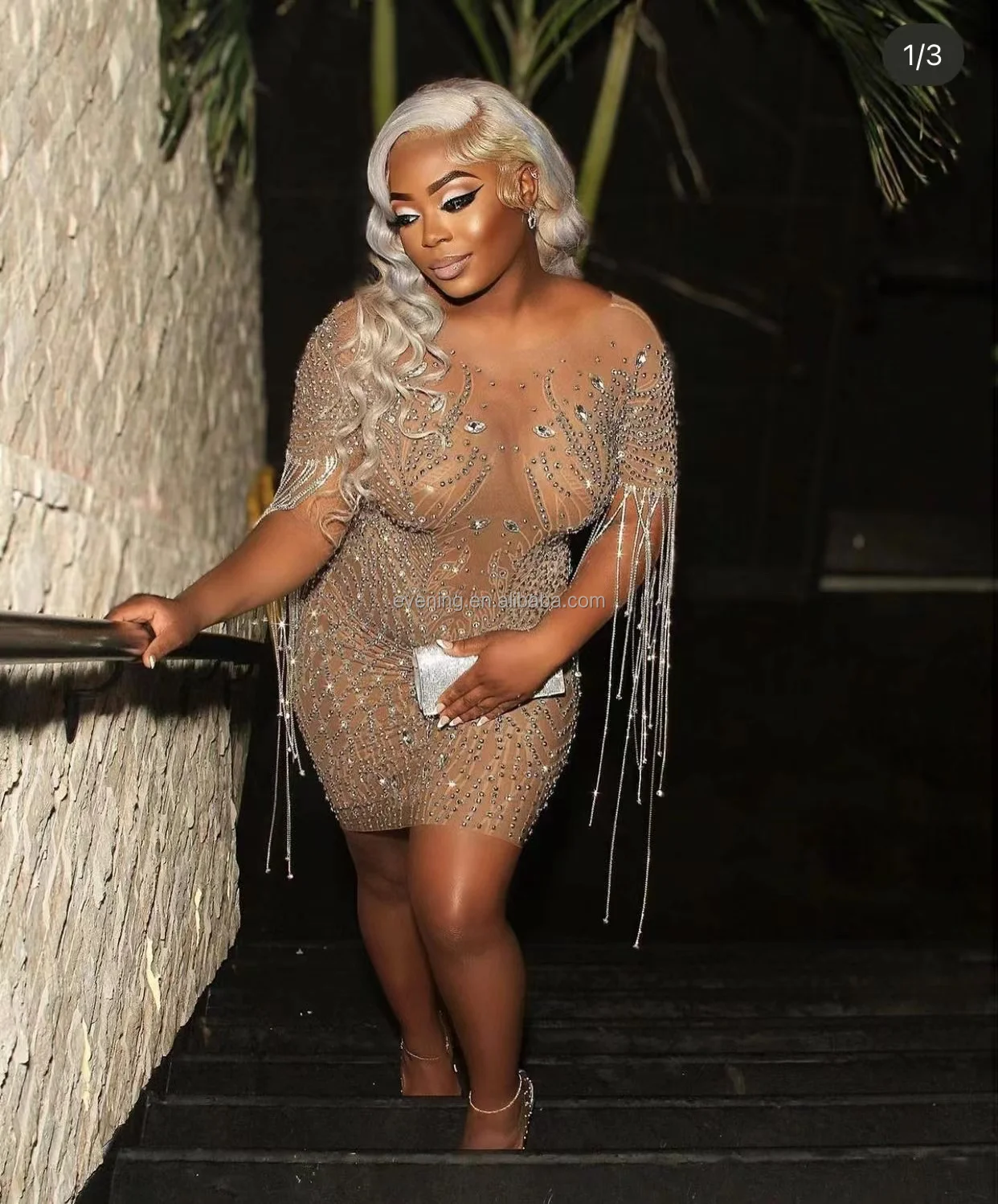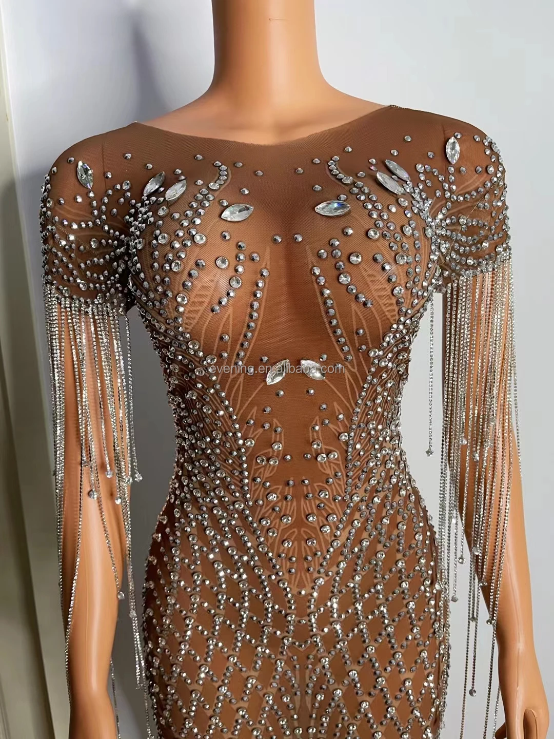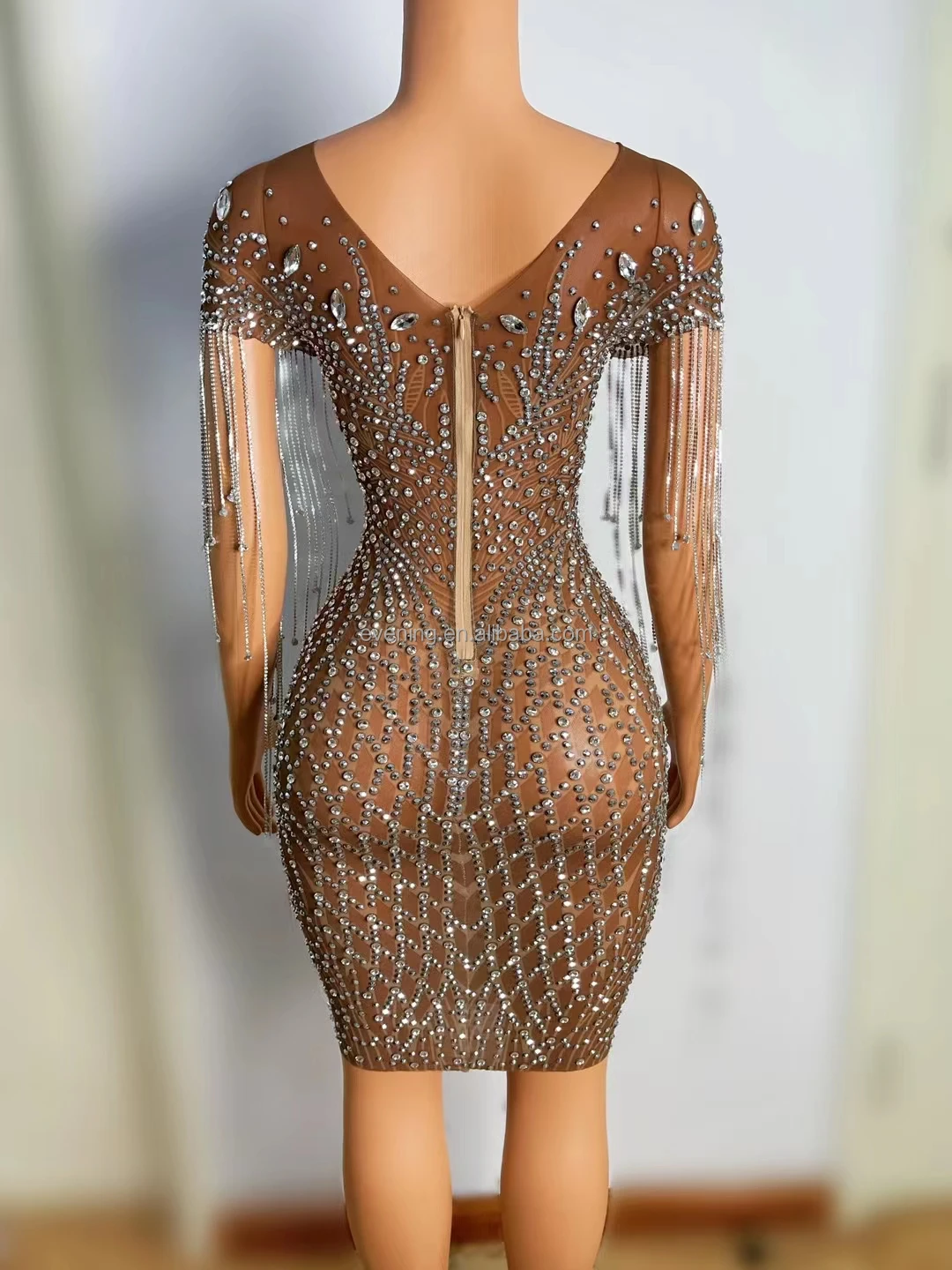 Elegant Rhinestone Tassel Mini Plus Size Dress