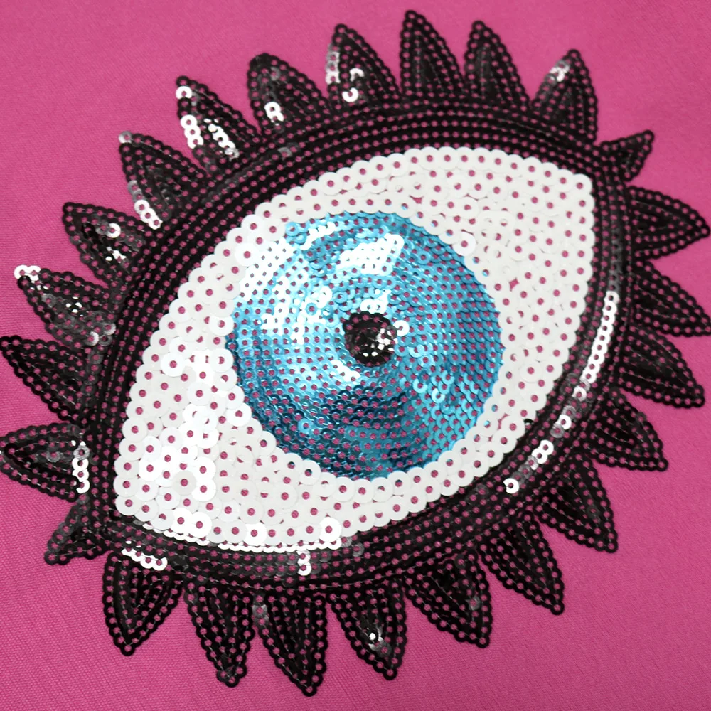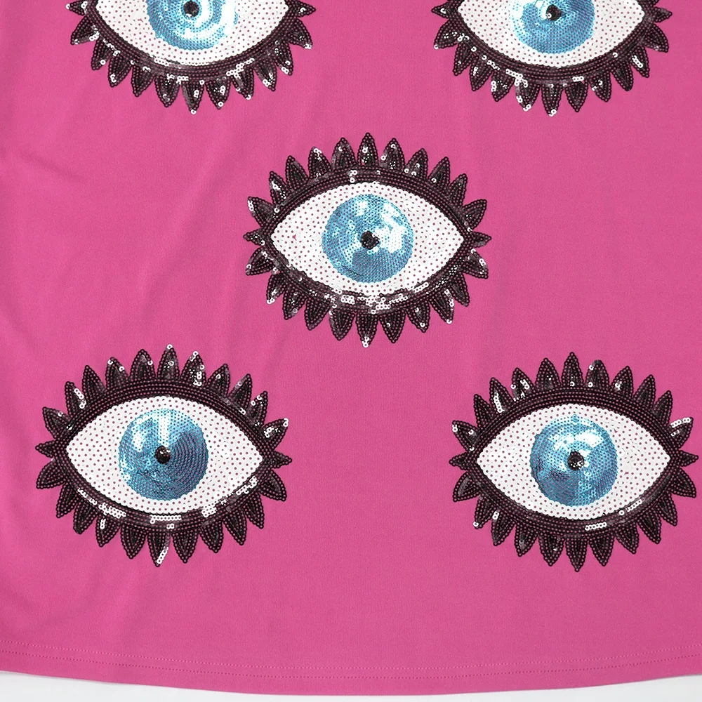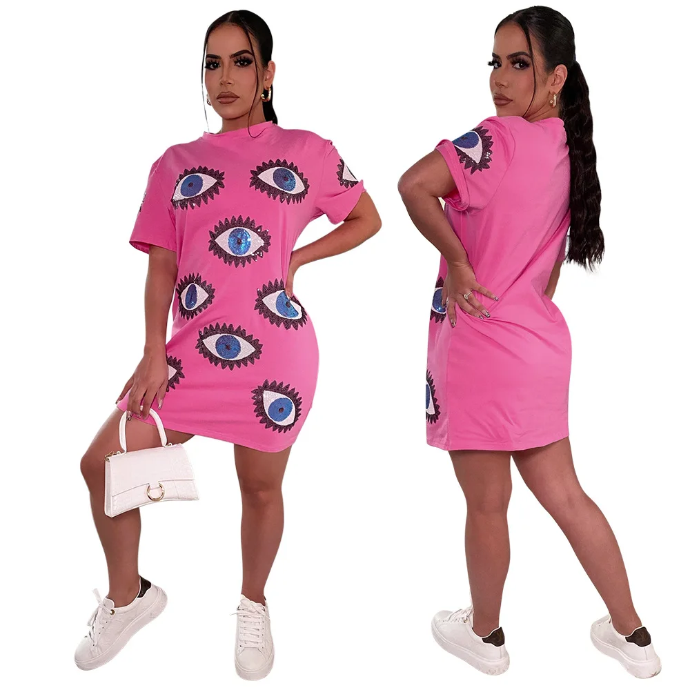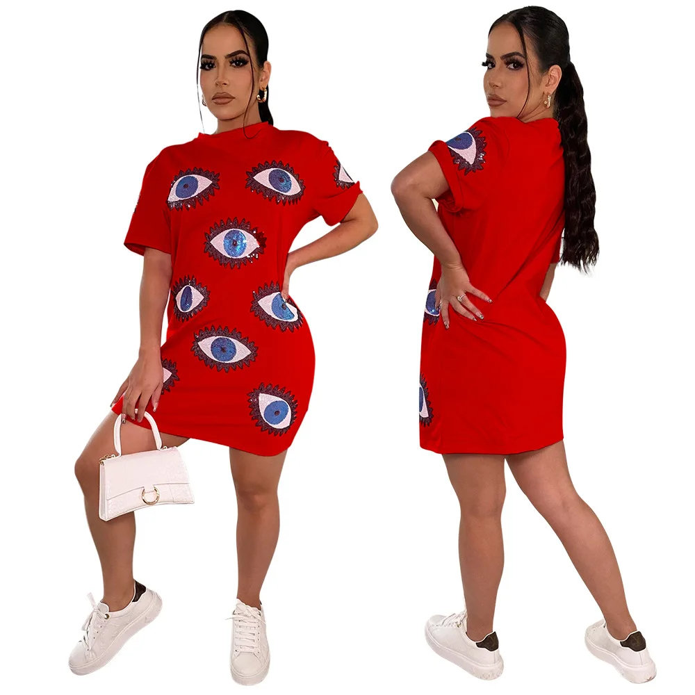 Casual Slim Mini Tee Shirt Sequin Eyes Print Mini Sexy Dress T Shirt Dress