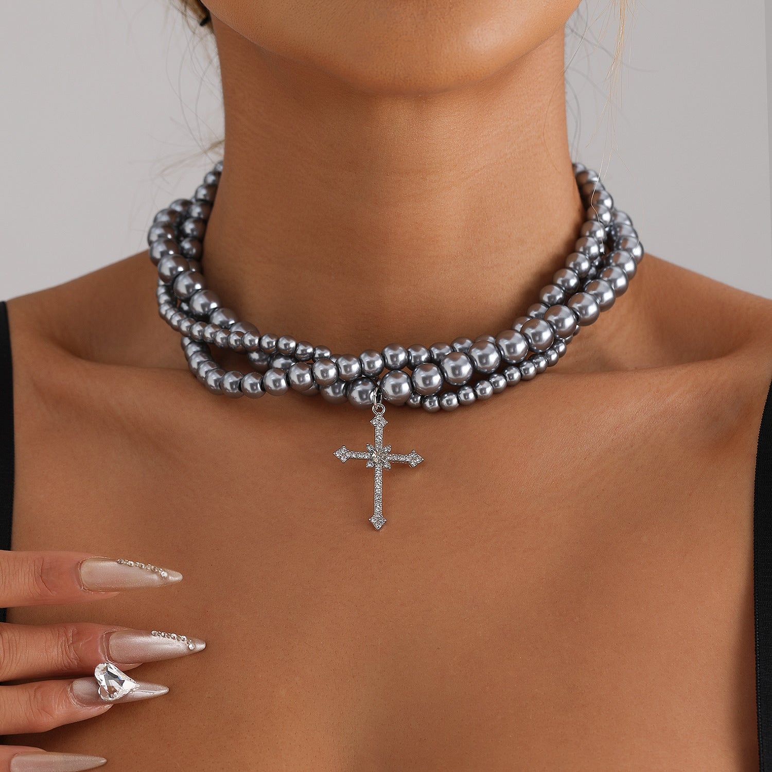 Clavicle Chain Painted Glass Beaded Diamond Cross Multi-layer Necklace