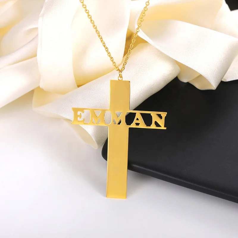 Custom Name Cross Pendant Stainless Steel Nameplate High-Quality Gold-Plated Chain Necklace