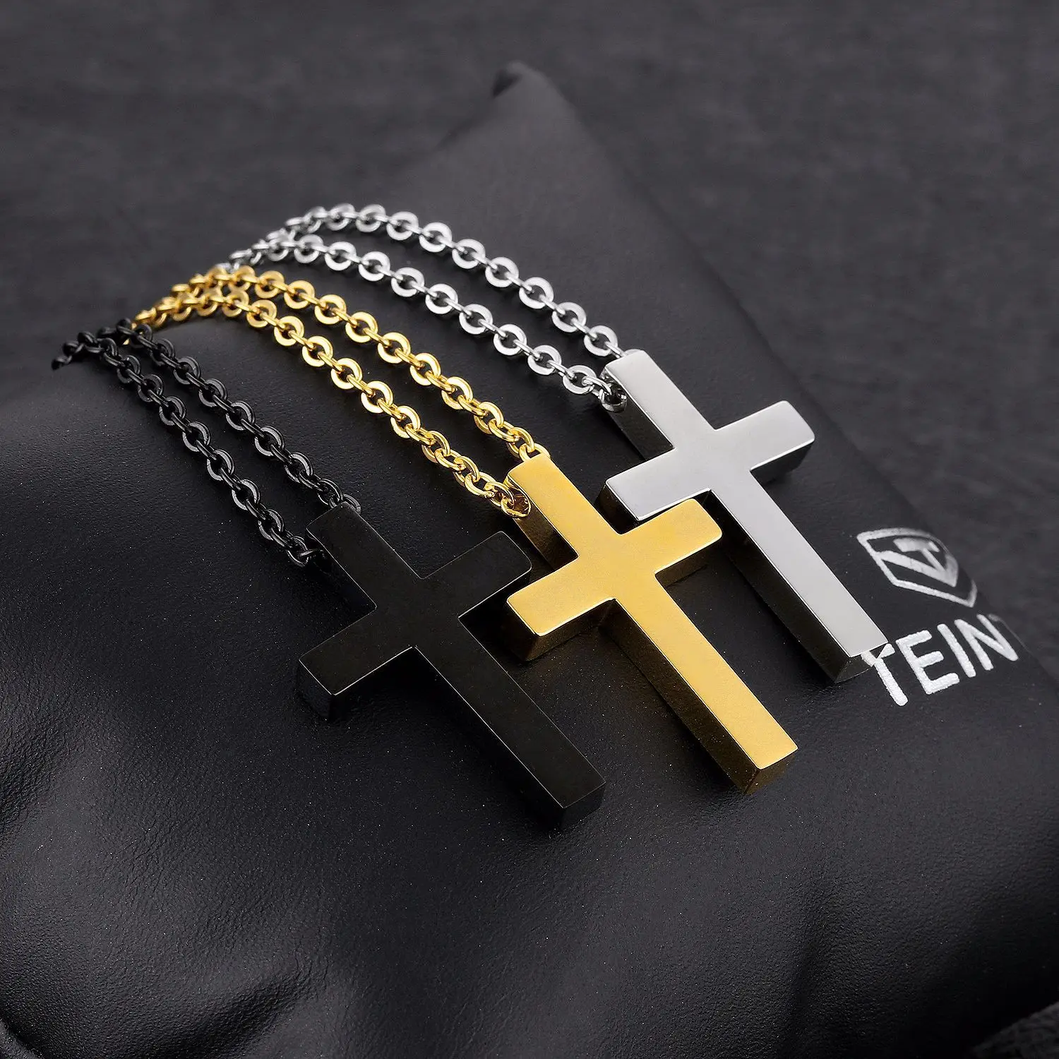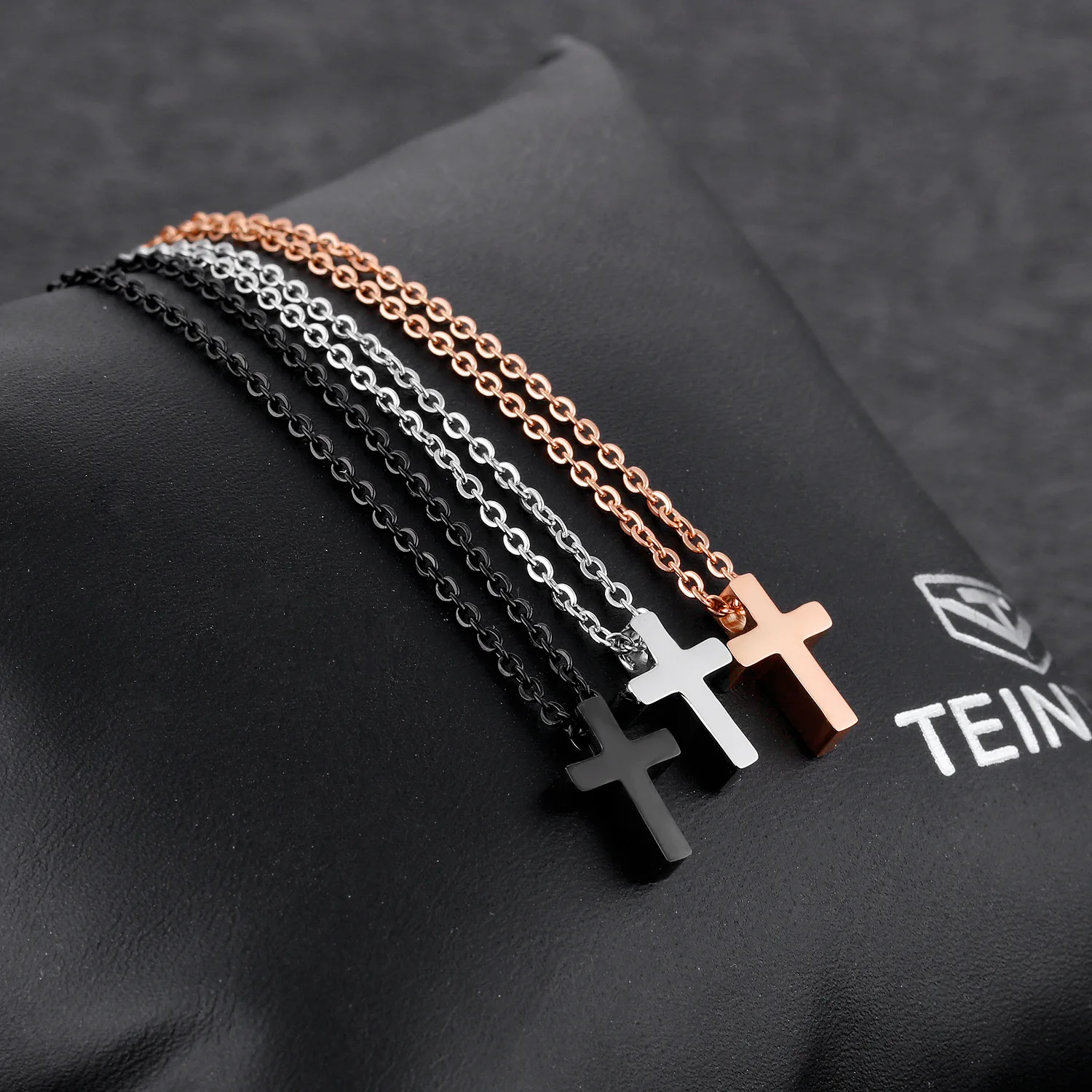Fashion Custom Stainless Steel Cross Pendant Necklace for Women and Men Link Chain Prayer Choker in Silver/Rose Gold/Black