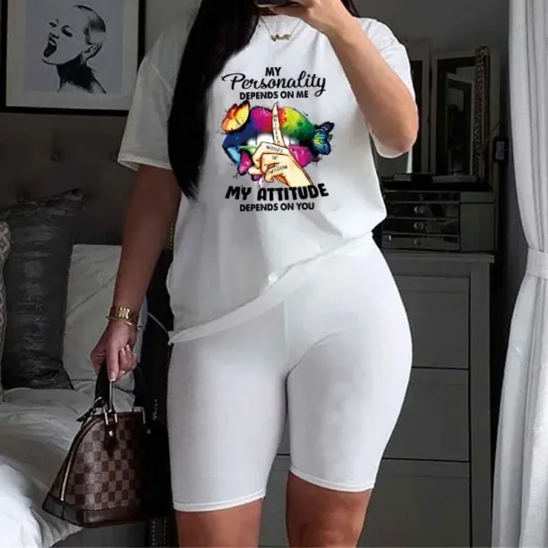 Casual Short Sleeved Top and Trousers Two Piece Faith Print Plus Size 2 Piece Set