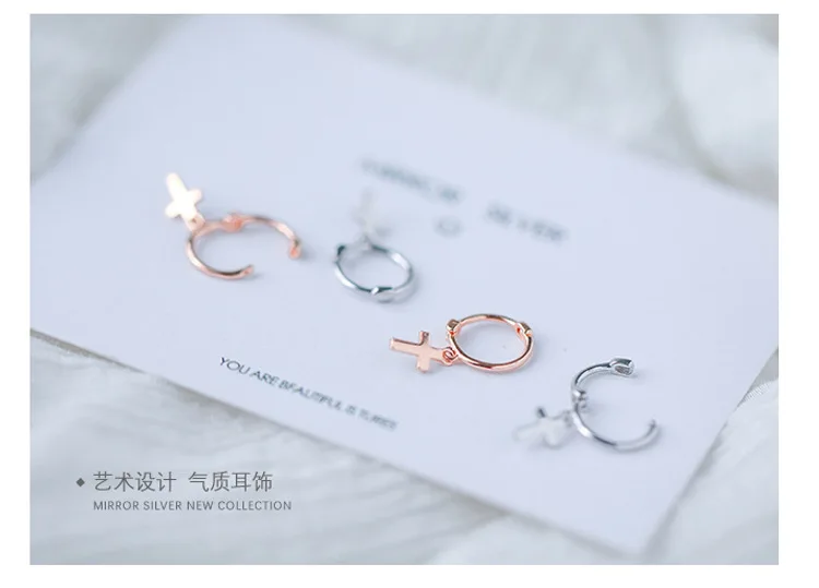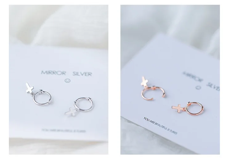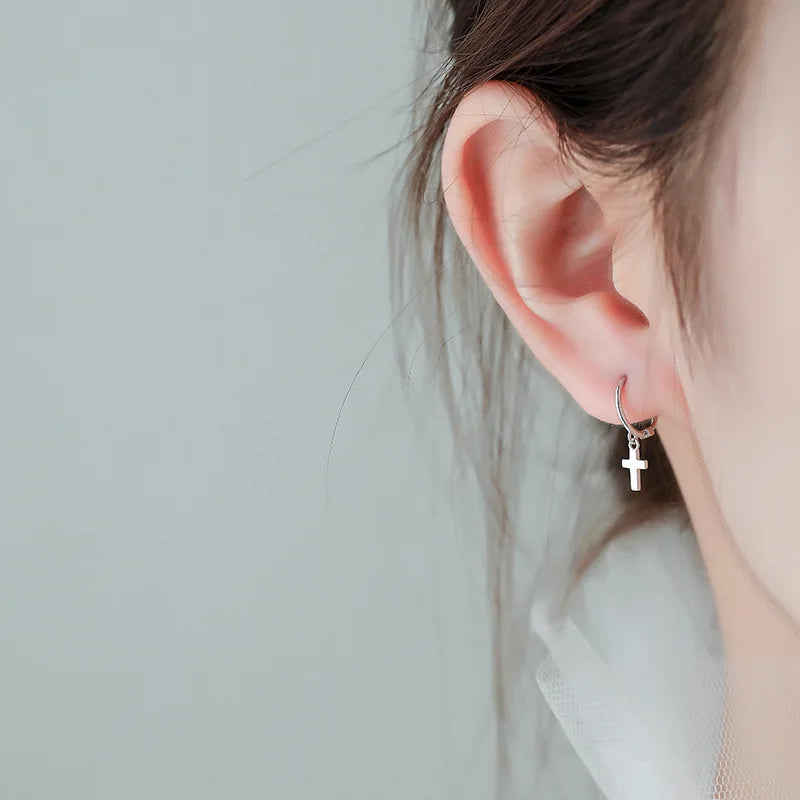 925. Fine Small Contracted Sterling Silver cross Womens Earrings