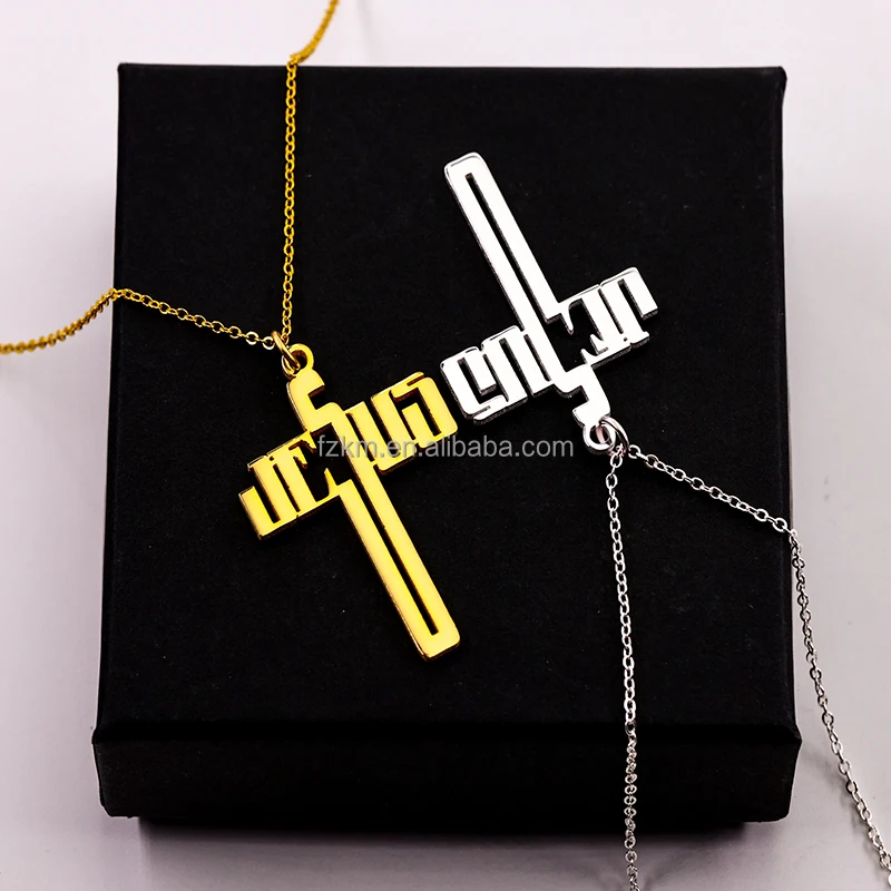 Stainless Steel 18k Gold Plated Jesus Cross Pendant Necklace Custom Necklace with Art Logo design Personalized Jewelry for Men