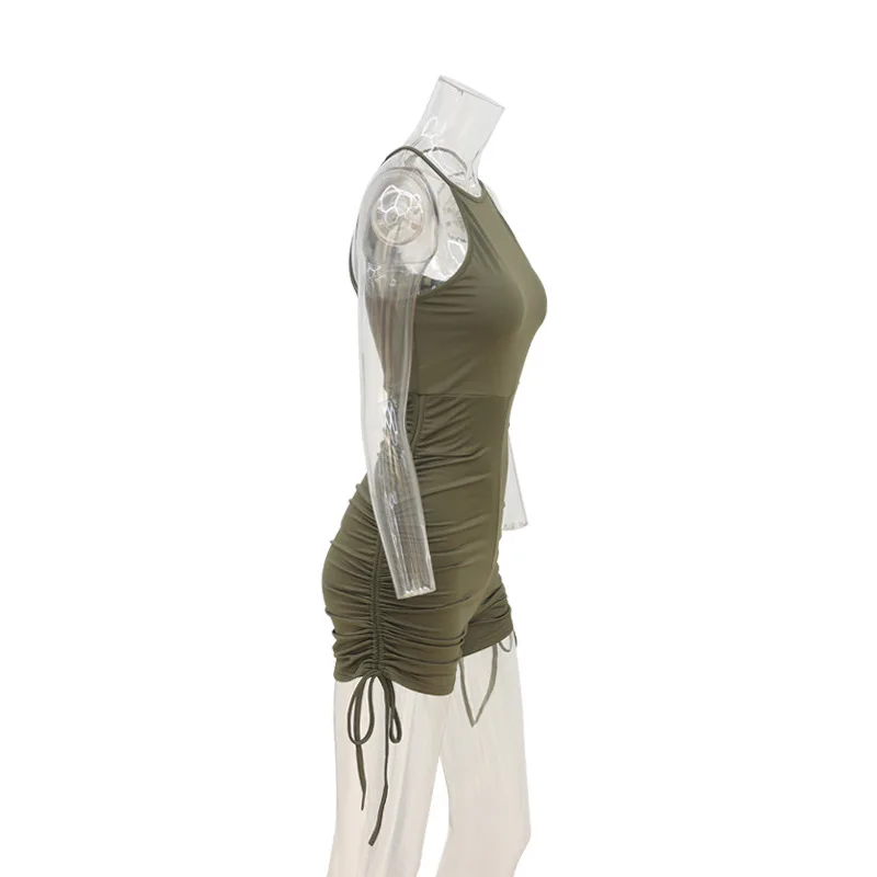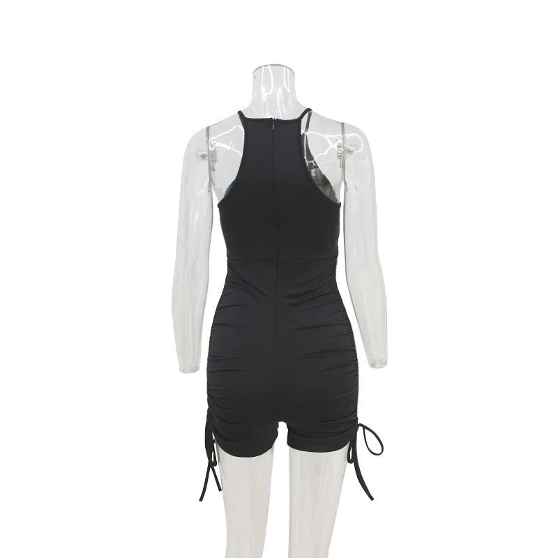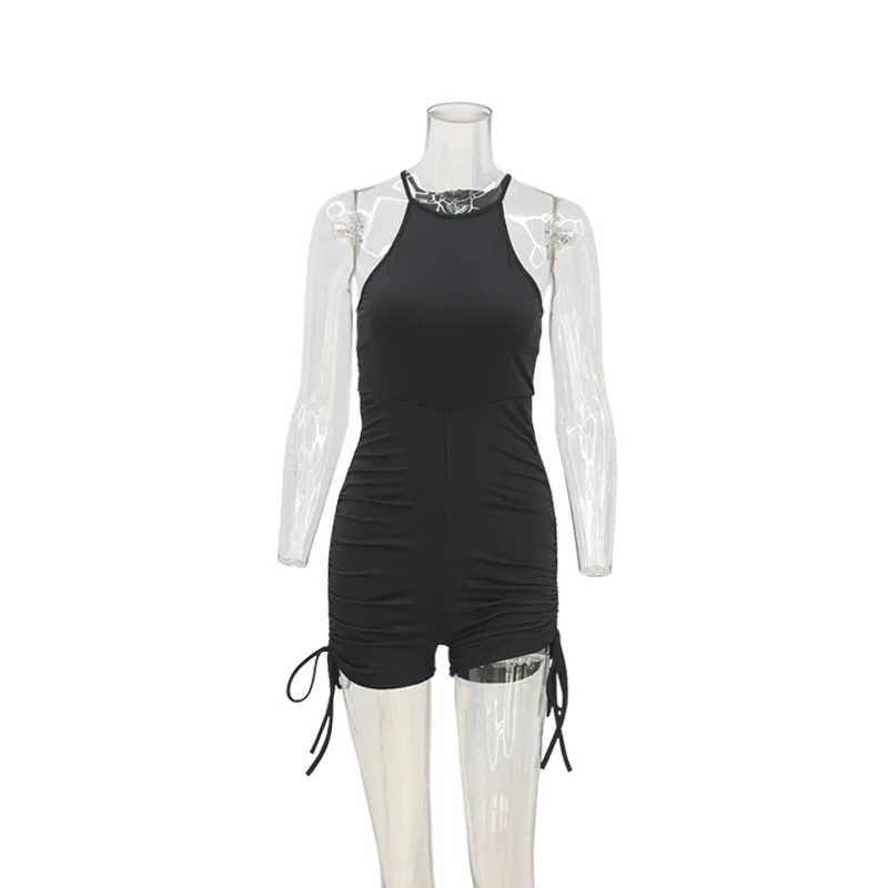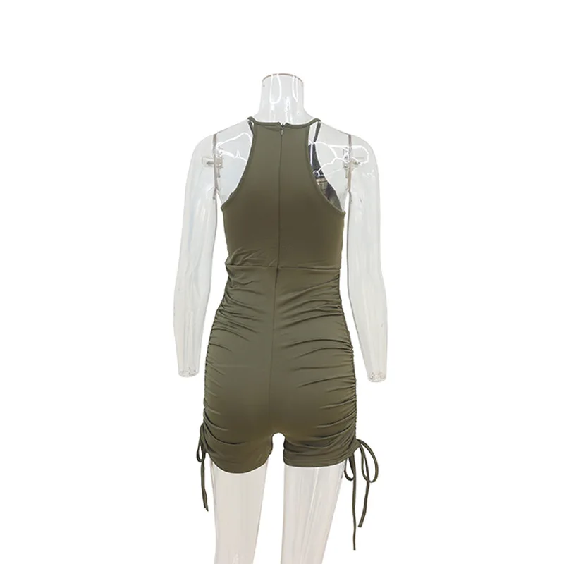 Sleeveless one-piece solid color drawstring halter short Romper