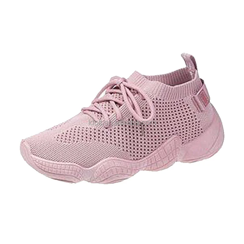 Rubber Sole Loafer Flat Mesh Casual Sports Shoes Fly weaving Low Top Women Sneakers