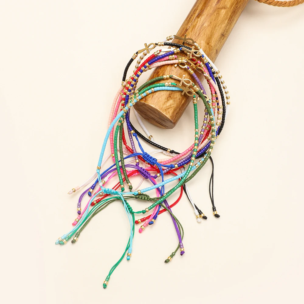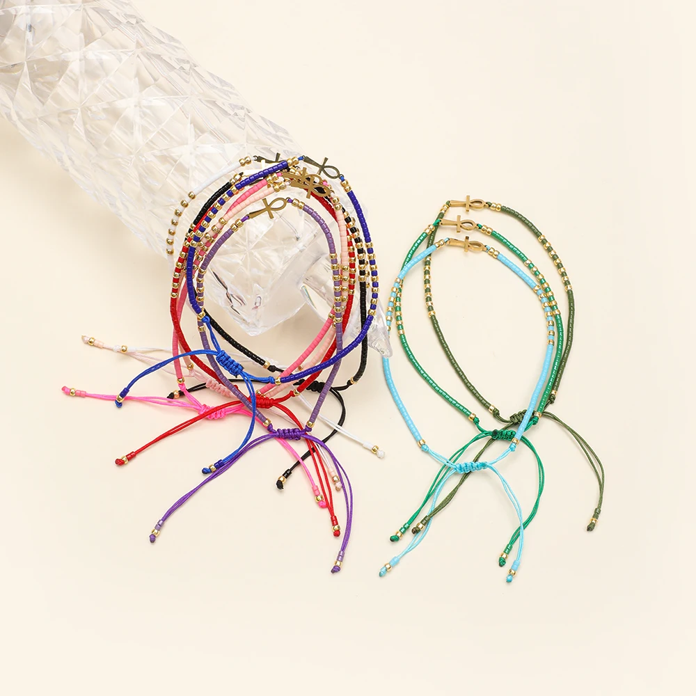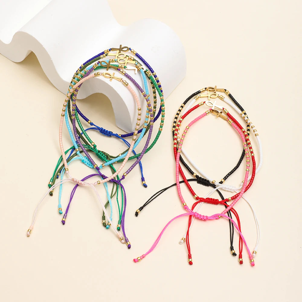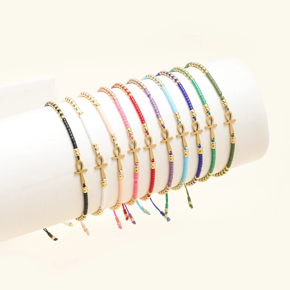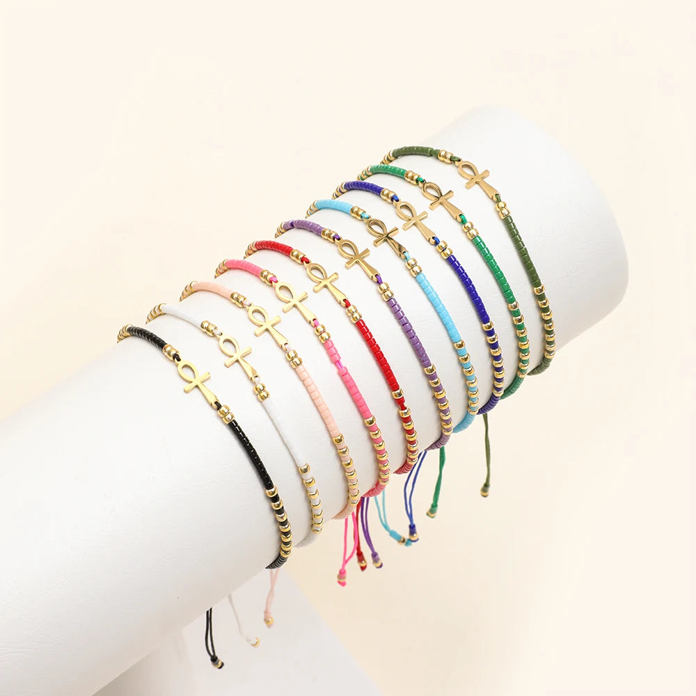Boho Miyuki Seed Beads Color Diy Beads Amulet Pendant Egyptian Ankh Crucifix Love Charms Mixed Bracelet Jewelry Glass Beads Boho Wholesale